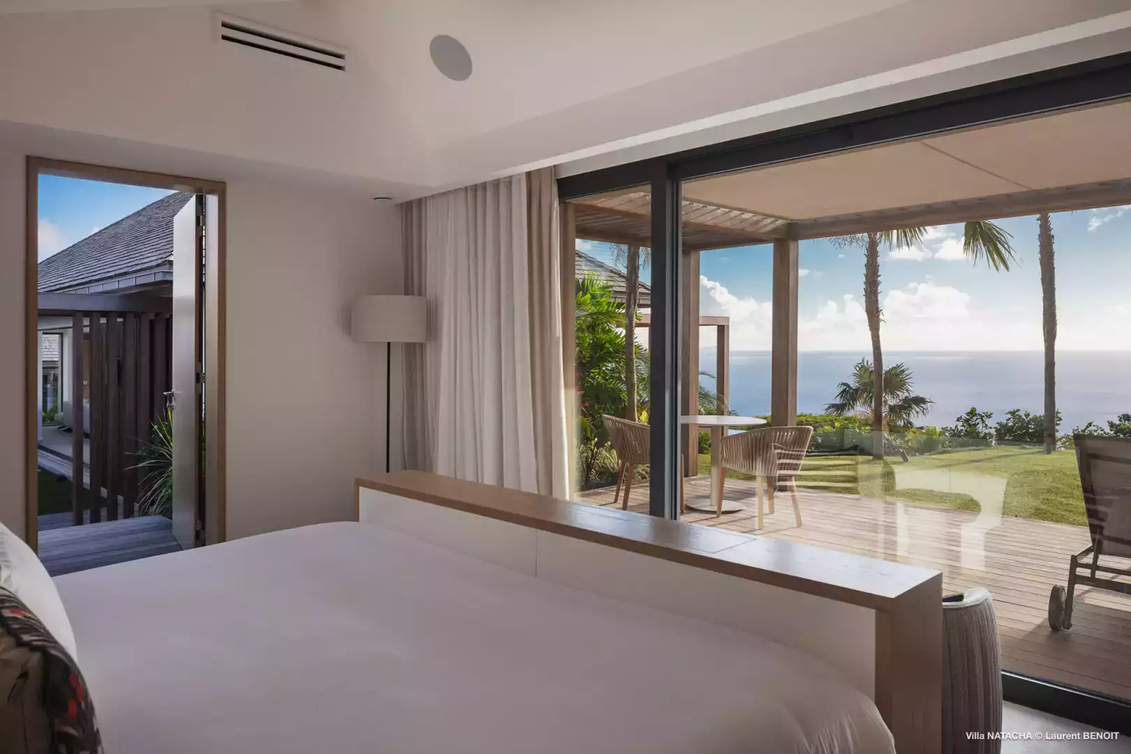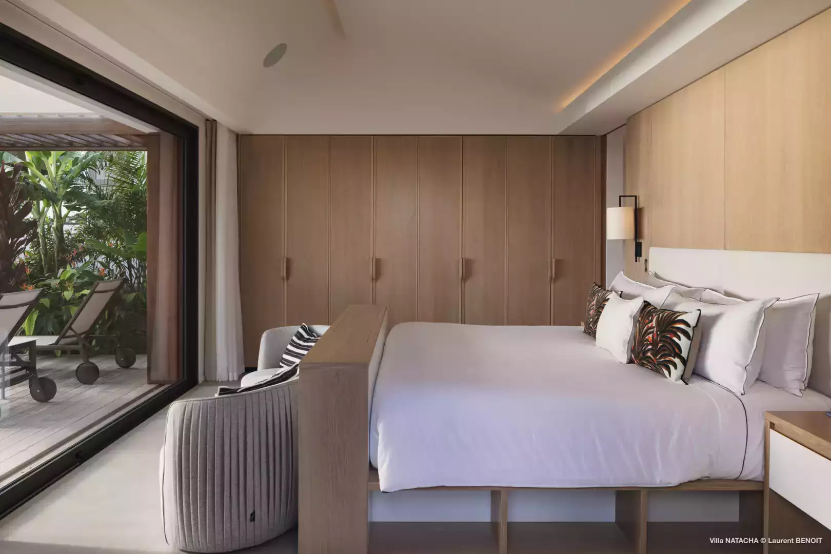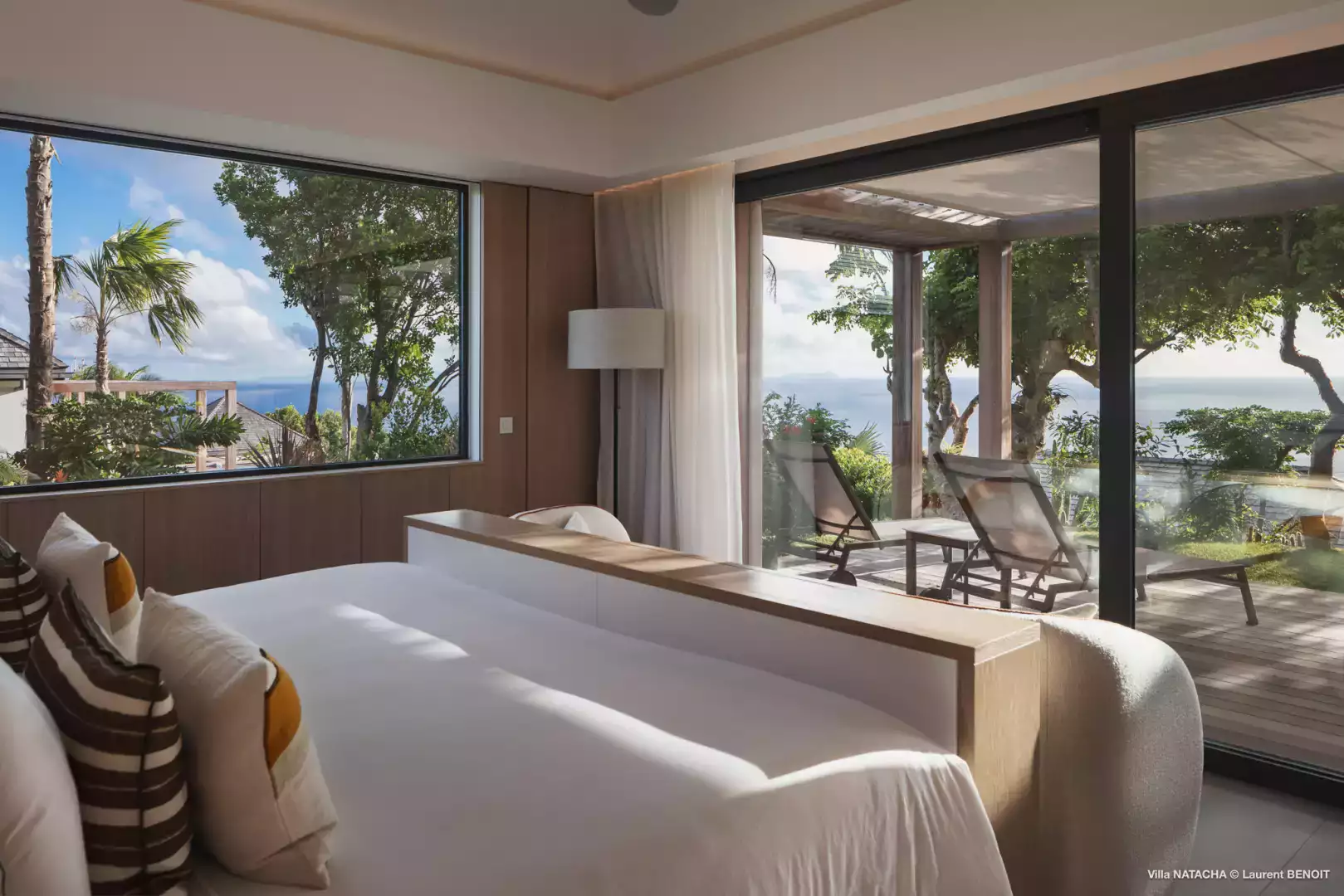 Designed for both relaxation and togetherness, Villa Natacha features spacious living areas with a Sonos sound system, a dining space facing the sea, and a sleek, fully equipped kitchen. Guests can also enjoy a private gym and a dedicated massage room, making wellness part of the experience.
