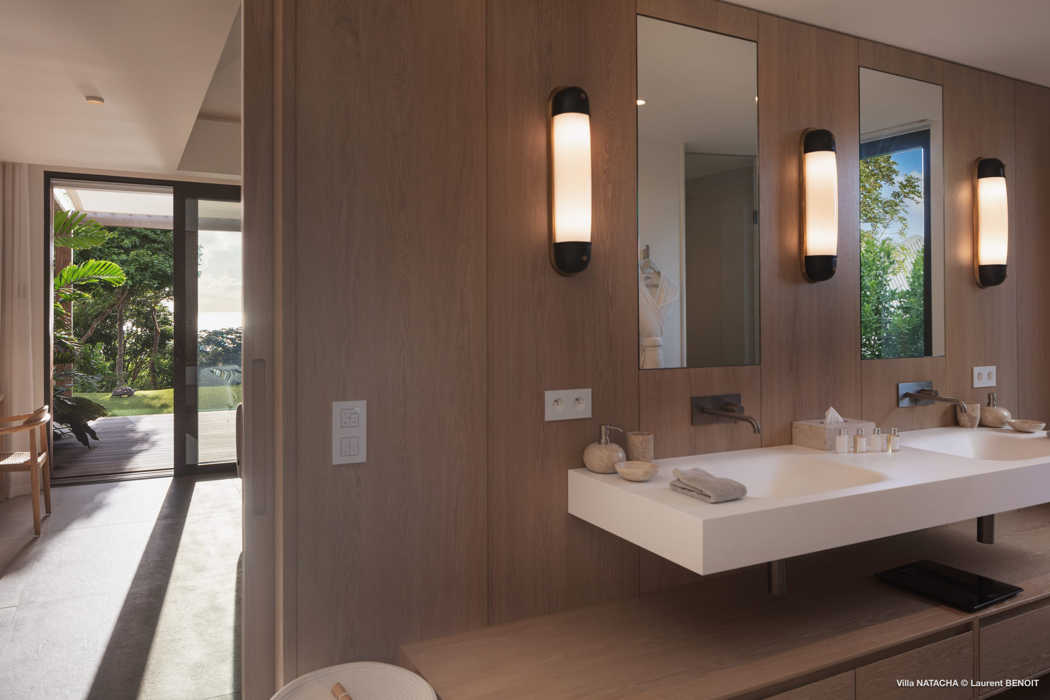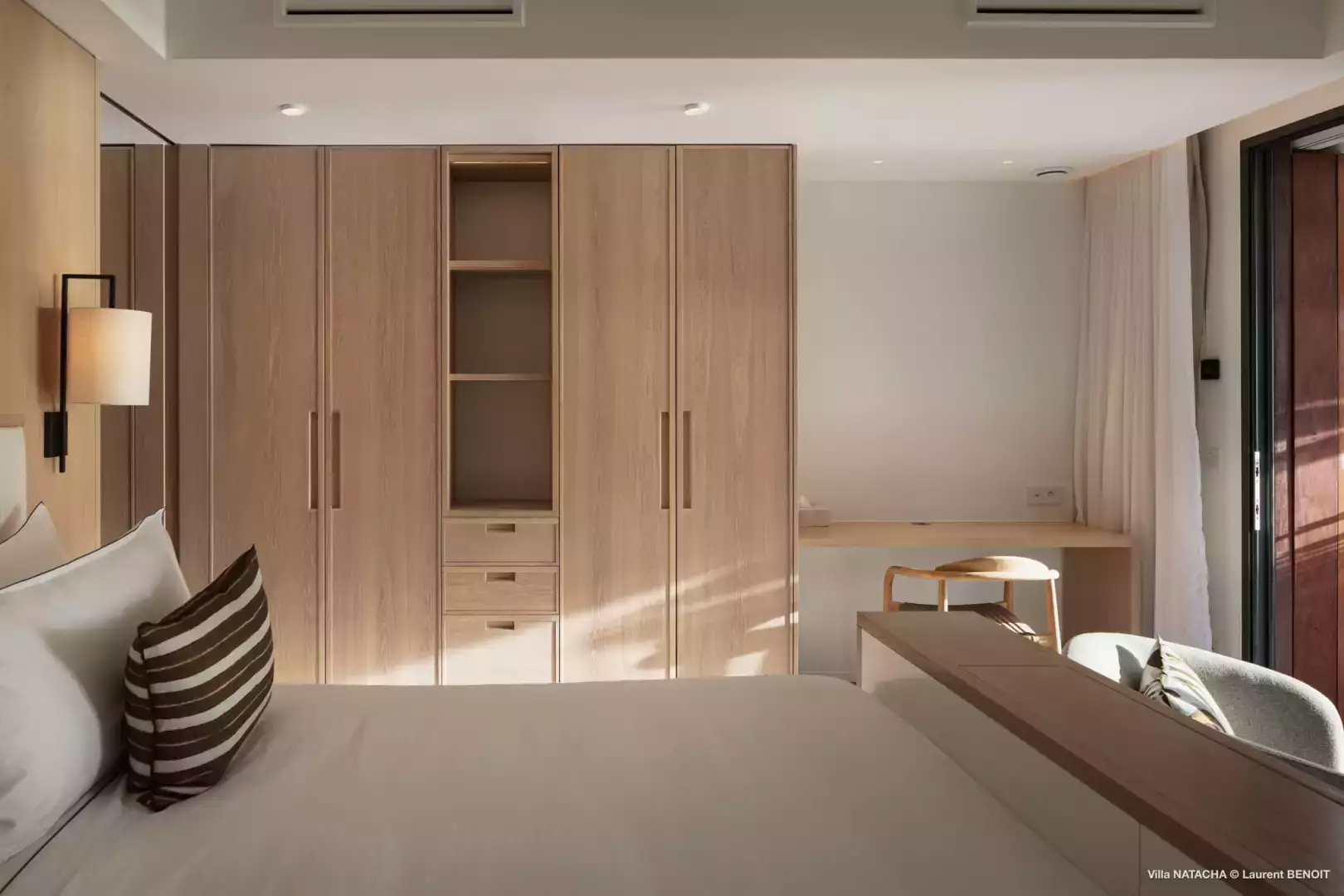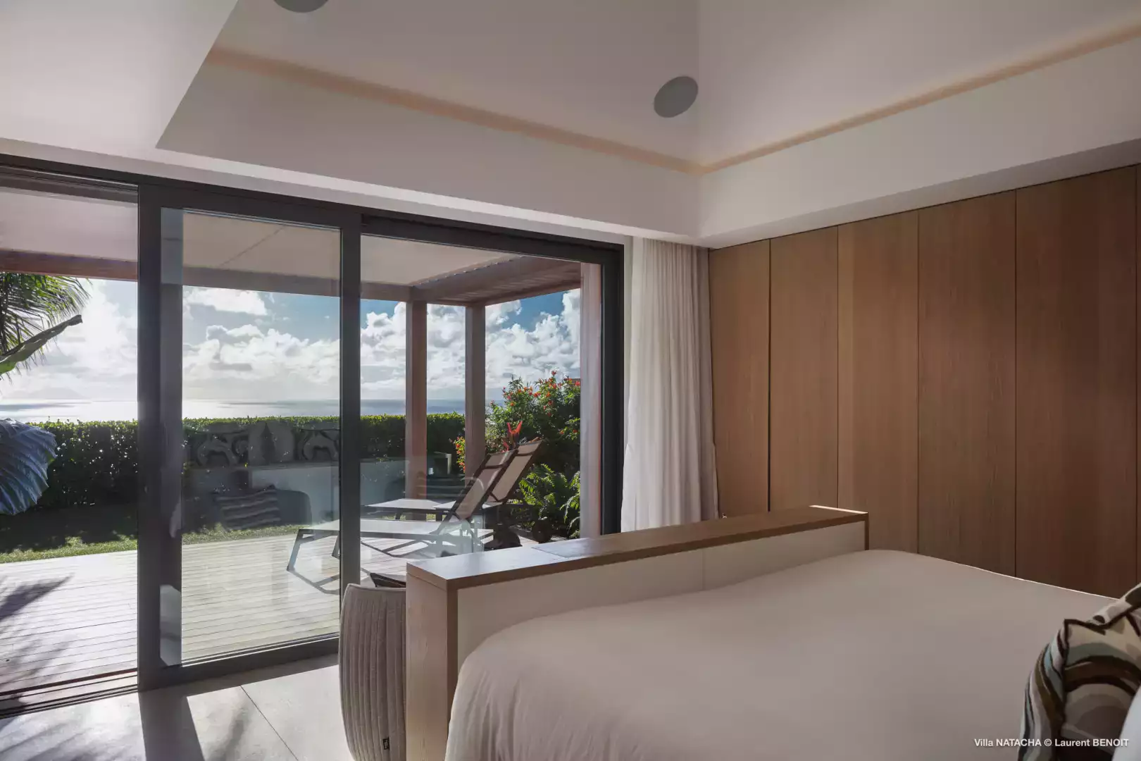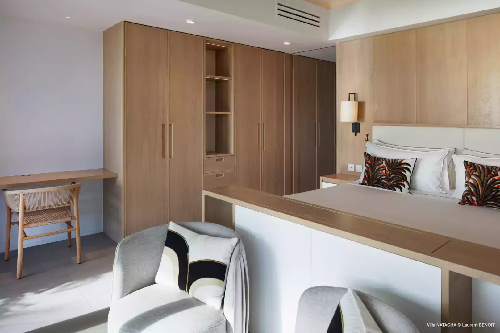 Designed for both relaxation and togetherness, Villa Natacha features spacious living areas with a Sonos sound system, a dining space facing the sea, and a sleek, fully equipped kitchen. Guests can also enjoy a private gym and a dedicated massage room, making wellness part of the experience.