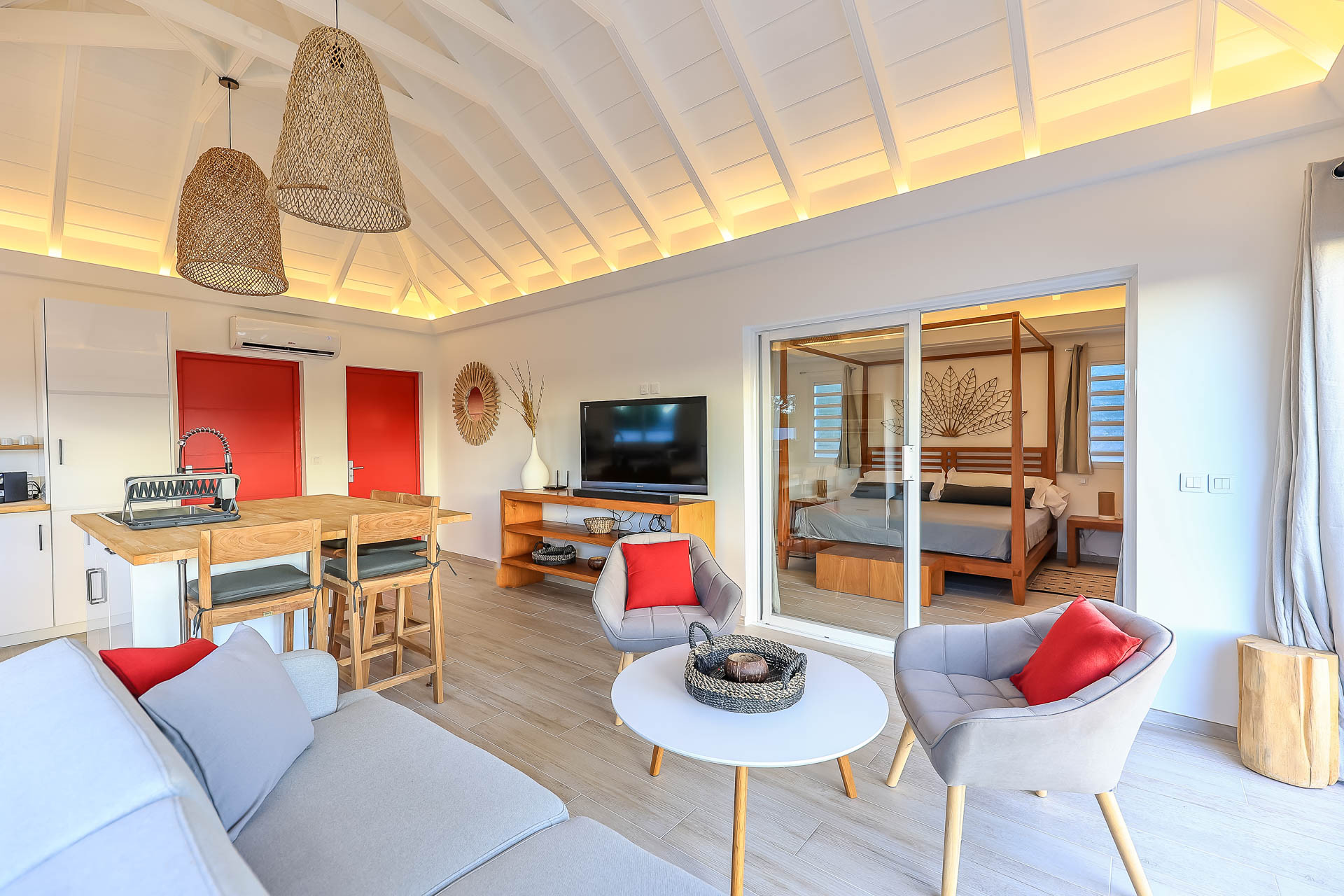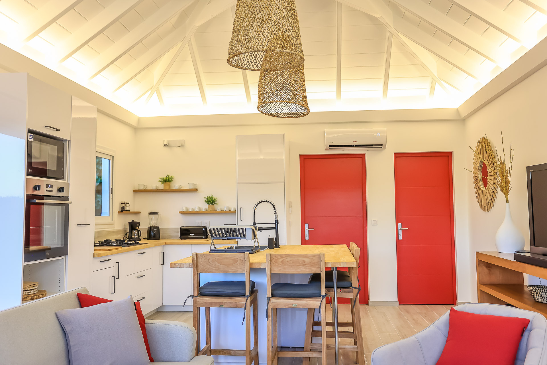 Nestled in the heart of Lorient, Villa Nerina offers the perfect balance of privacy and accessibility. Enjoy the stunning seaview overlooking Lorient Bay, where you can watch surfers ride the waves from the comfort of your private, air-conditioned sanctuary.