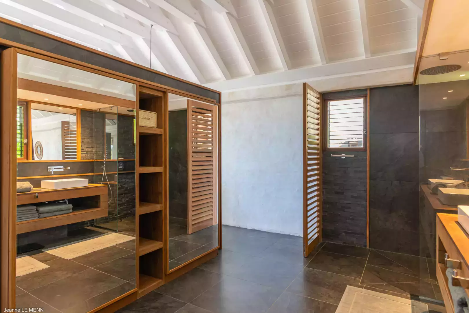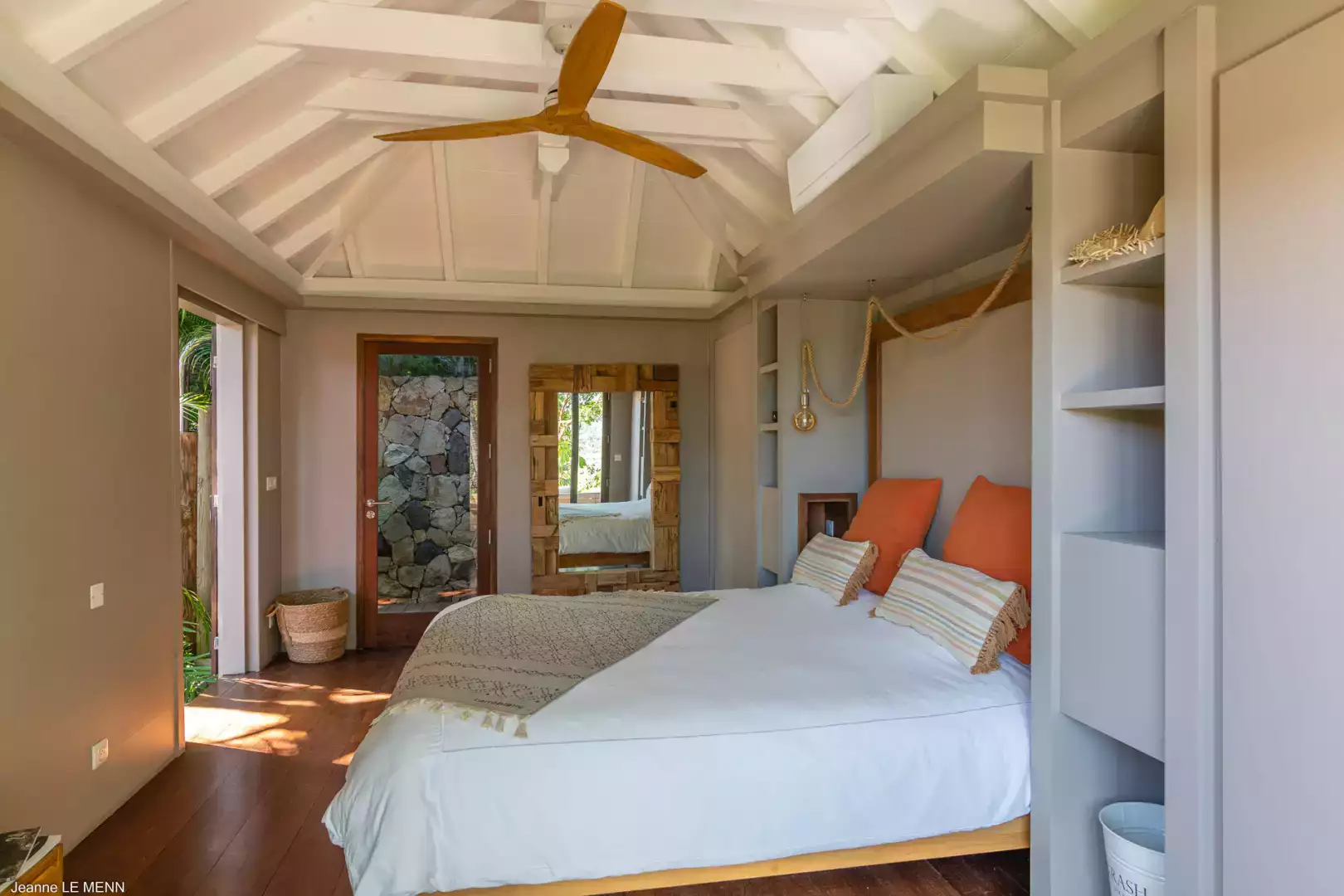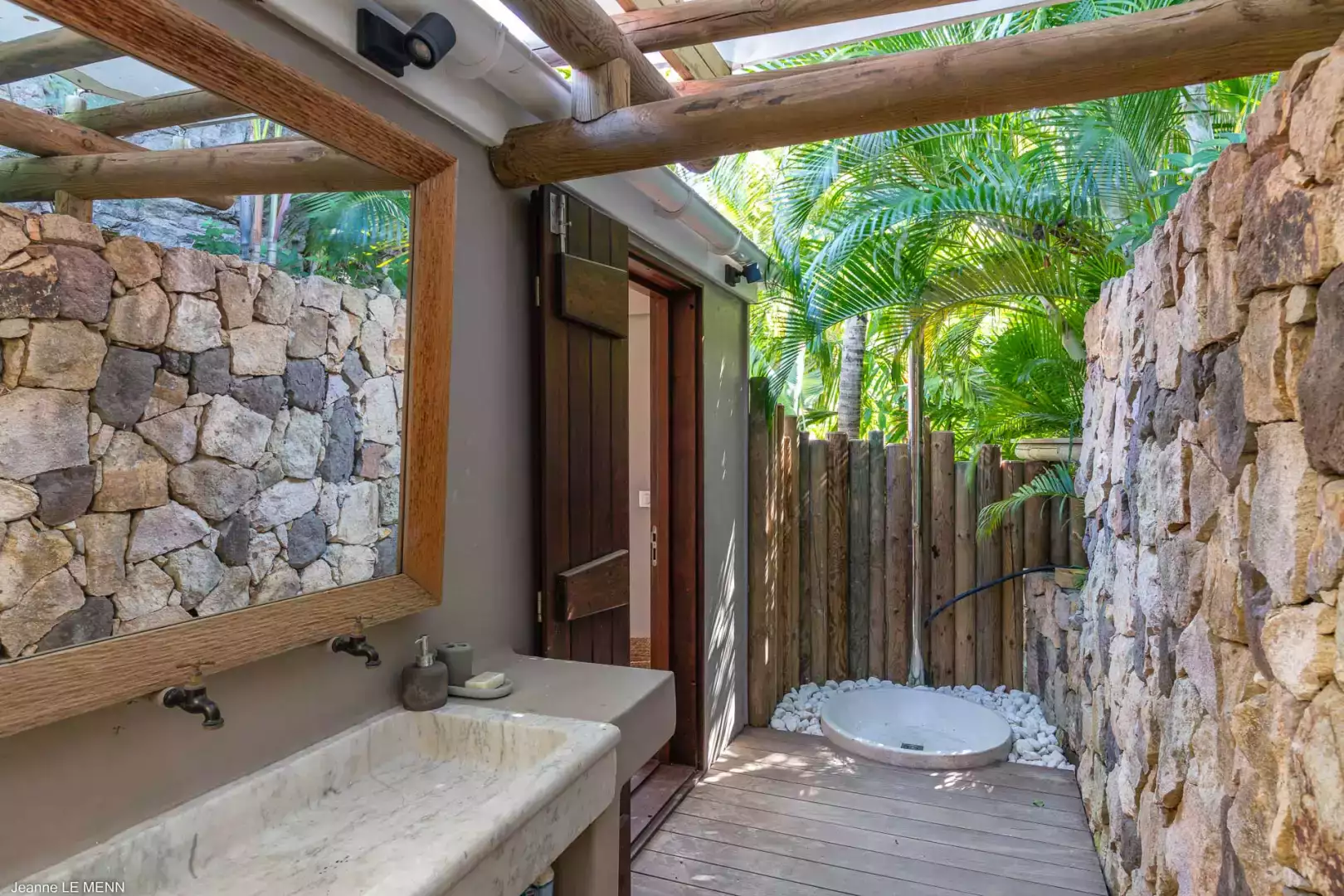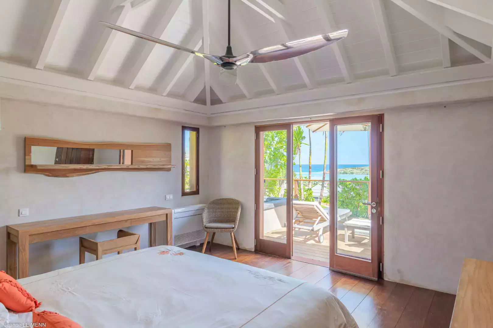 Tucked away in the serene setting of Grand Cul de Sac, Villa Ti Rock offers a chic tropical retreat for your next St. Barth getaway. As you enter the property from the back, you’re greeted by a beautiful outdoor space, complete with a refreshing pool and a comfortable lounge area perfect for soaking in the island atmosphere.