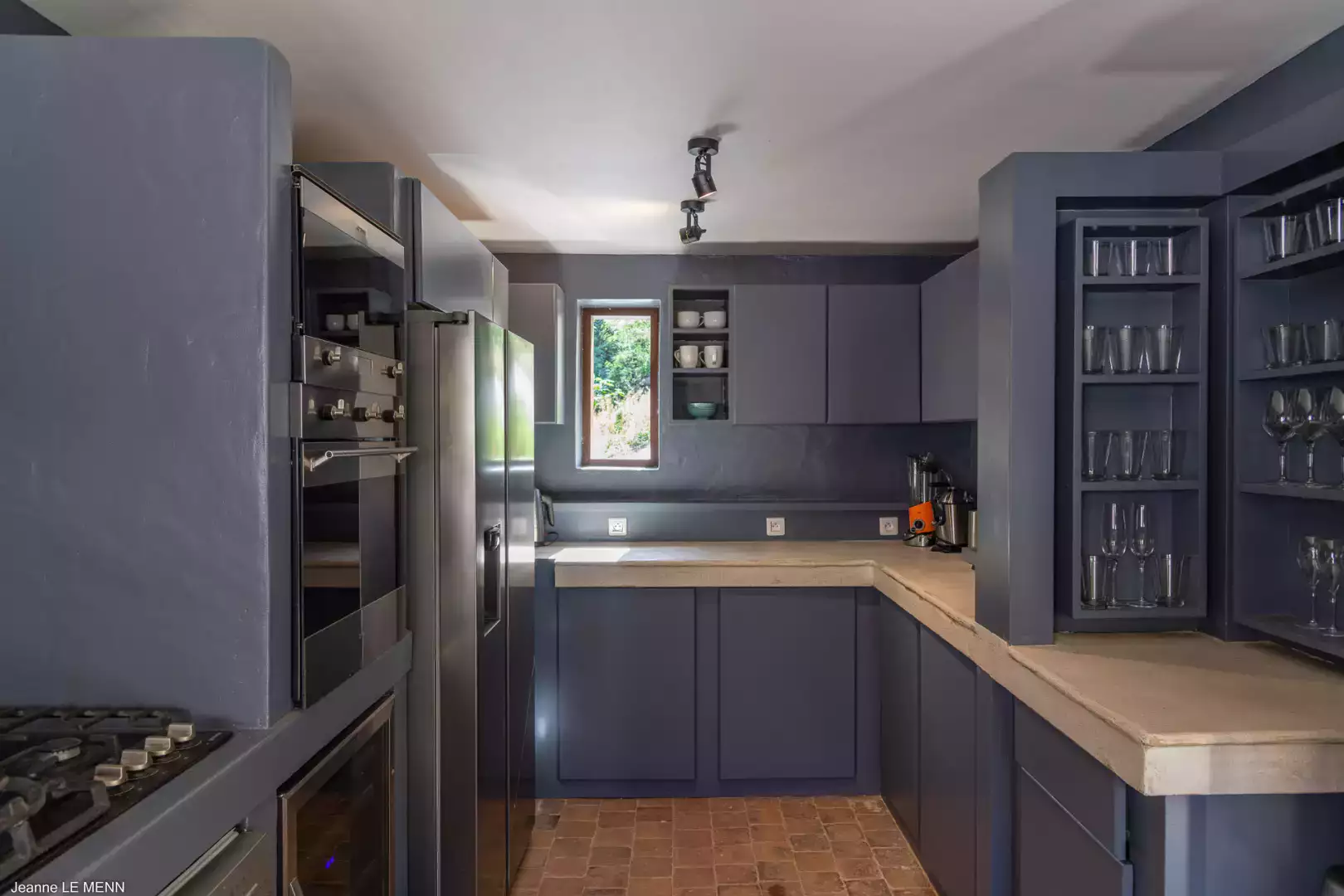 Open to living room, air-conditioning (A/C), fridge, freezer, dishwasher, oven, microwave oven, filter coffee maker, Nespresso coffee maker, toaster, kettle, juicer, wine cellar