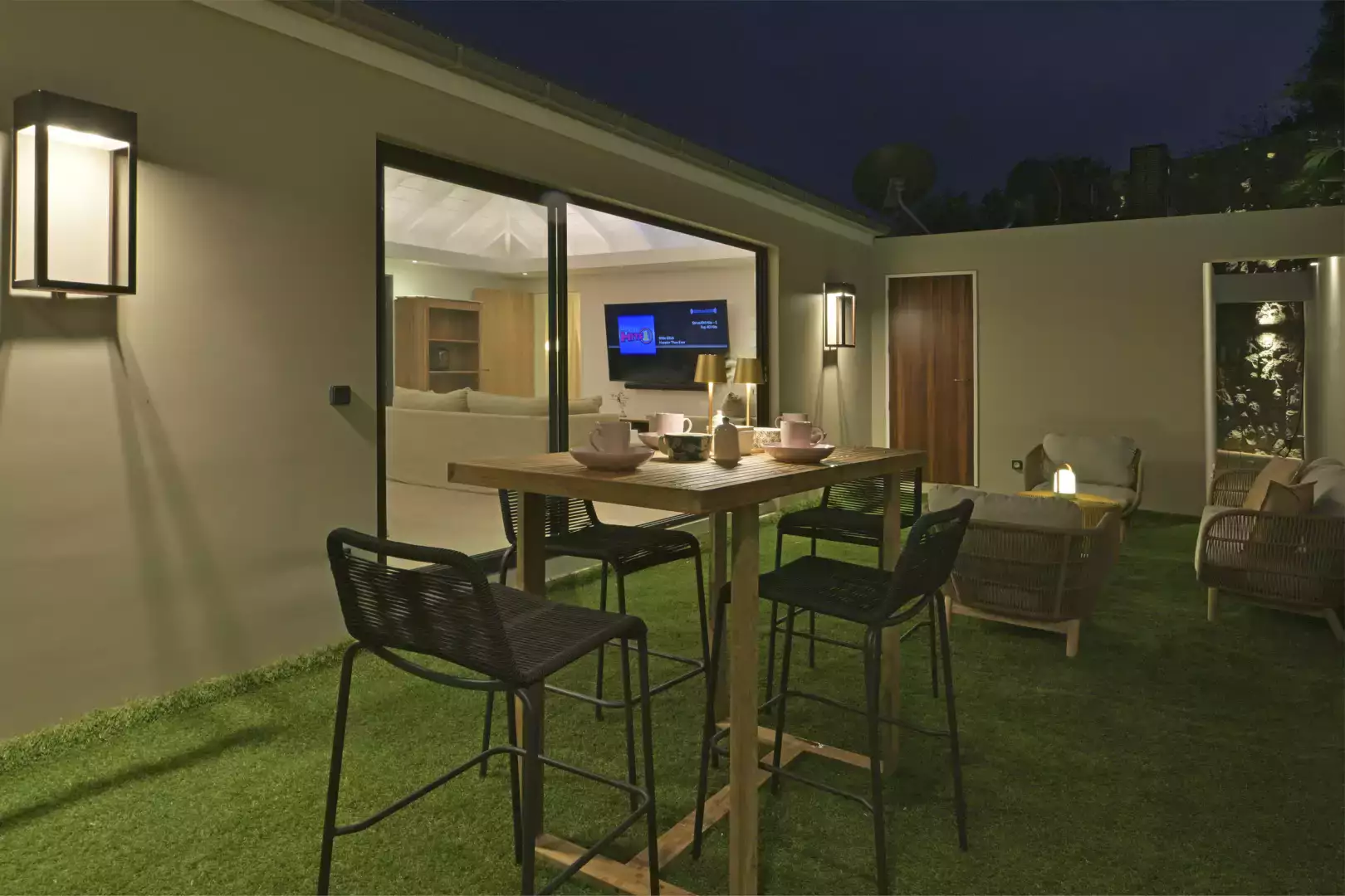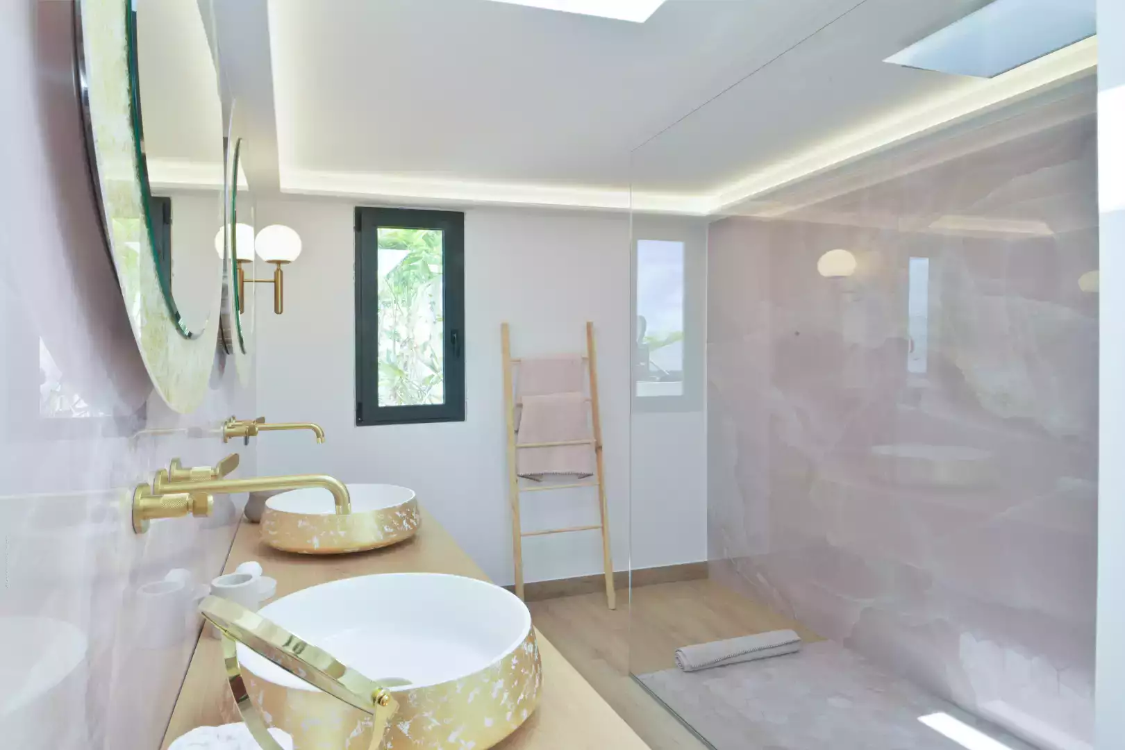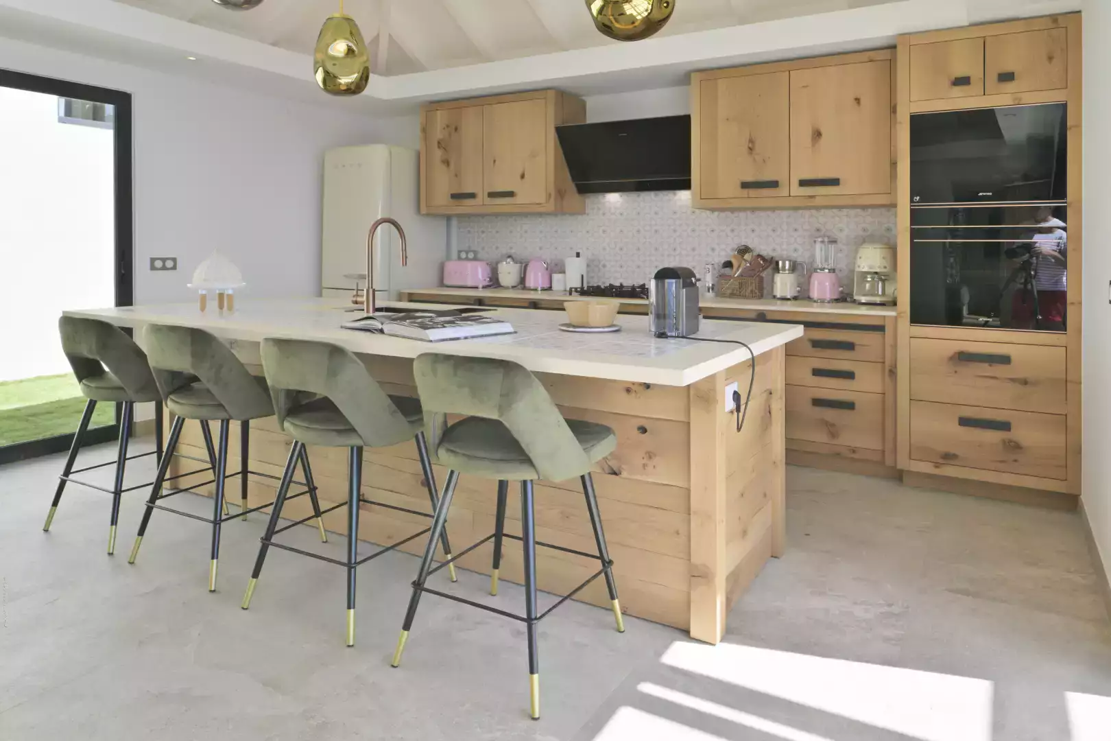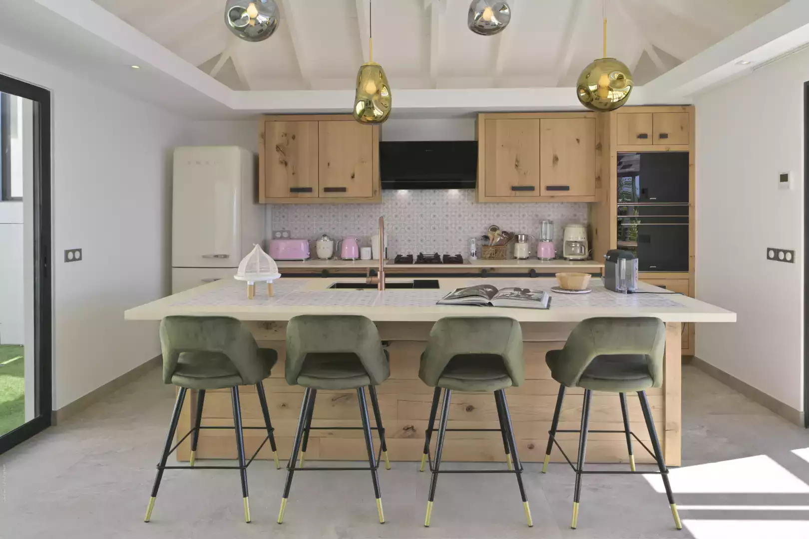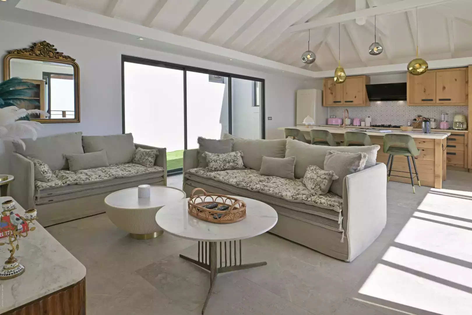 Le salon lumineux s’ouvre sur l’extérieur et invite à la détente avec ses équipements haut de gamme, dont un système Sonos et la télévision satellite. La cuisine ouverte, entièrement équipée, ravira les gourmets les plus exigeants. À l’extérieur, la piscine chauffée vous tend les bras, entourée de transats et d’un coin BBQ pour les fins de journée en toute convivialité.