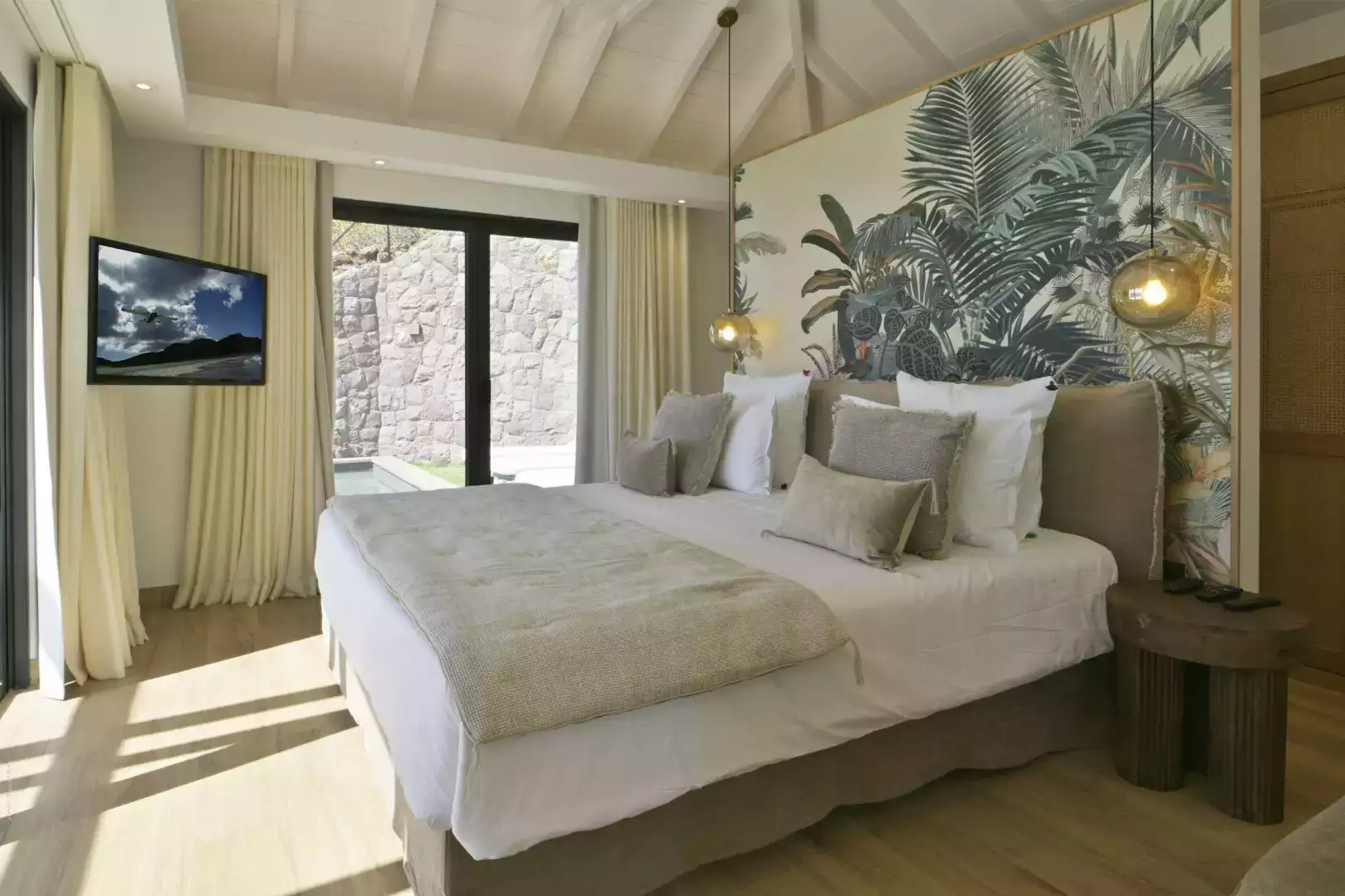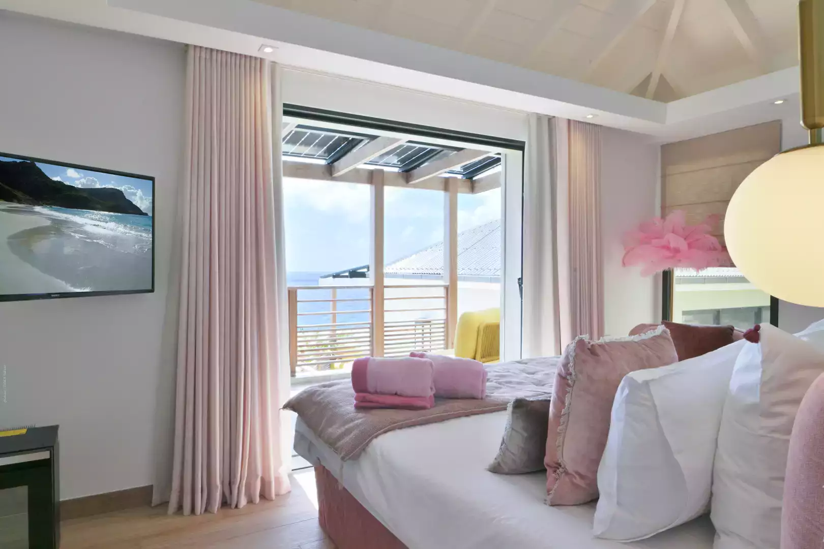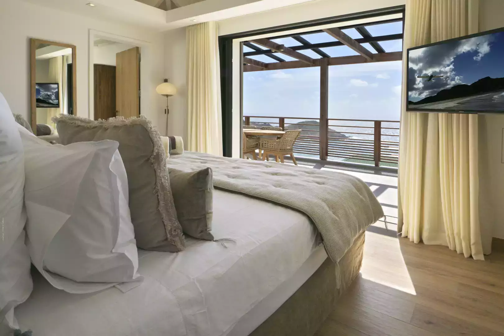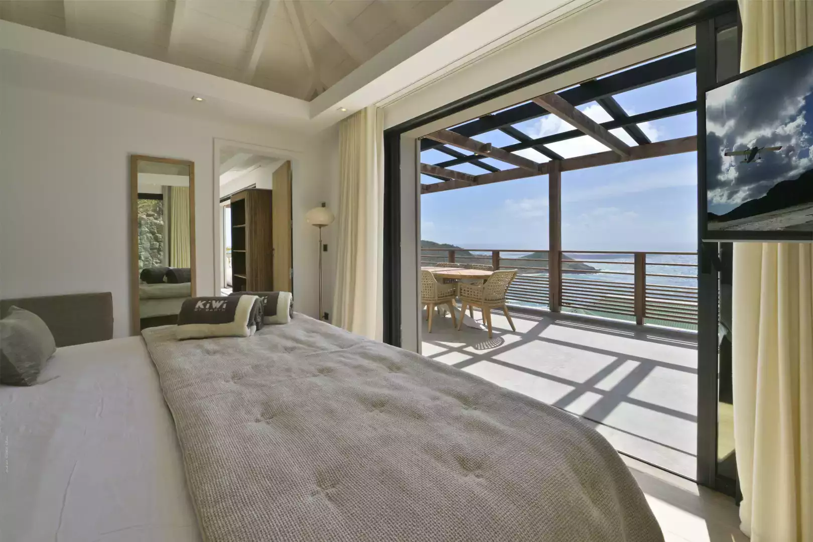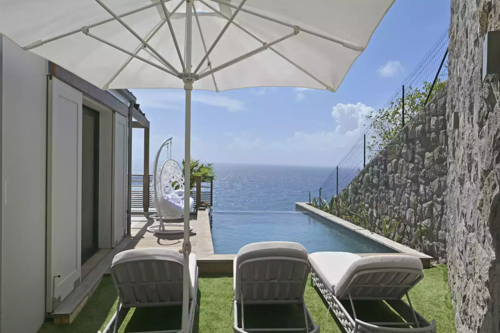 Perchée à flanc de colline sur les hauteurs sauvages de Toiny, la Villa Davalia est un refuge élégant pour les amateurs de tranquillité et de panoramas spectaculaires. L’accès peut être raide, mais la récompense est immédiate : une vue imprenable sur l’océan à perte de vue. Cette villa contemporaine à la décoration épurée dispose de deux belles chambres, chacune avec salle de bain privée, TV, climatisation, enceinte Bluetooth et vue mer. L’une des chambres offre même une terrasse privée et un minibar, parfaite pour un réveil en douceur face à la mer.