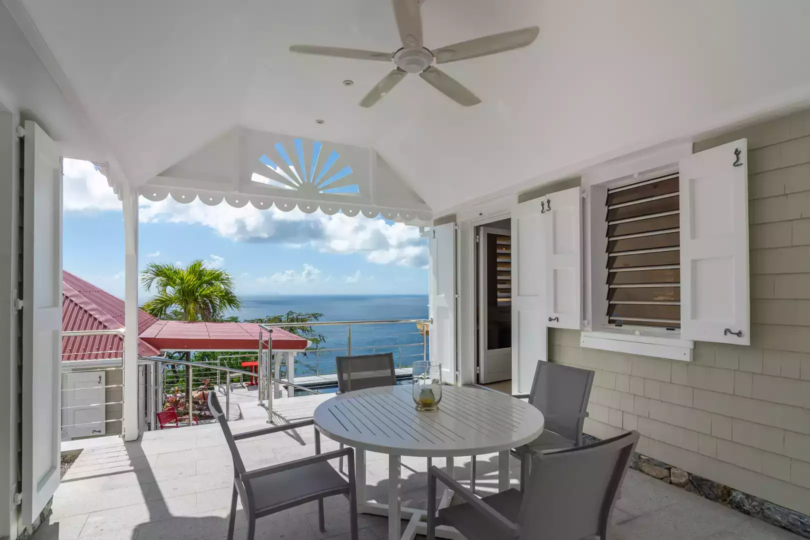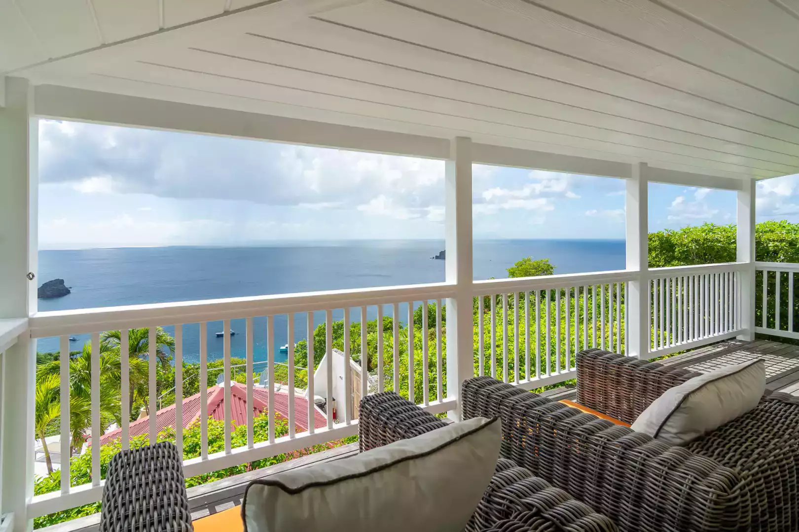 Nichée sur les hauteurs paisibles de Colombier, la Villa La Baleine est une adresse pleine de charme offrant une vue spectaculaire sur l’océan. Son architecture traditionnelle avec ses toits rouges emblématiques et ses volets blancs lui confère une vraie personnalité caribéenne, tout en intégrant un confort moderne parfaitement maîtrisé.